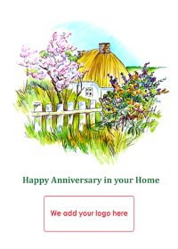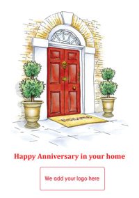 Front of the card: The colour of the door and flower pot can be changed to reflect your corporate colours.