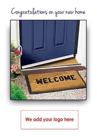 Front of the card: We can add your logo. The greeting, font and colour of the door can be changed.